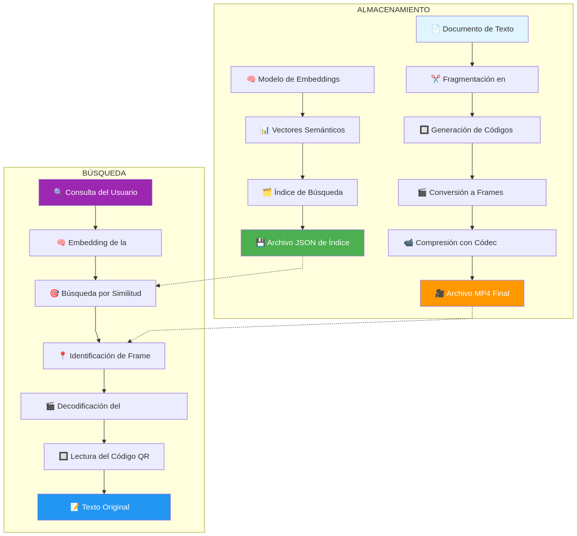 - Texto → QR → Frame: Cada fragmento de texto se convierte en un código QR único